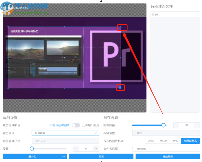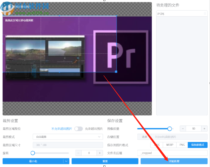 7.选择设置好输出路径之后,我们点击界面右下角的开始处理这个功能按钮就可以开始裁剪图片的操作了。