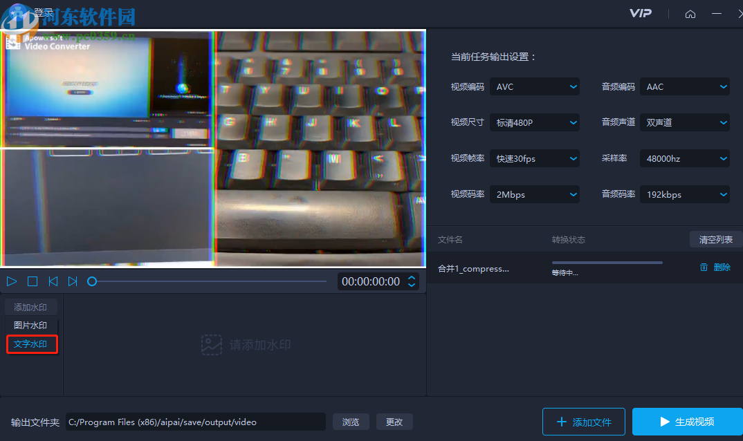 6.最后调整完成,我们在上方的视频界面中可以看到文字水印的效果,满意的话点击界面右下角的生成视频按钮即可将添加水印的视频导出保存。