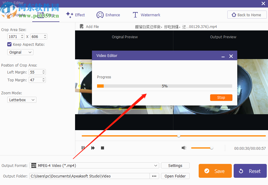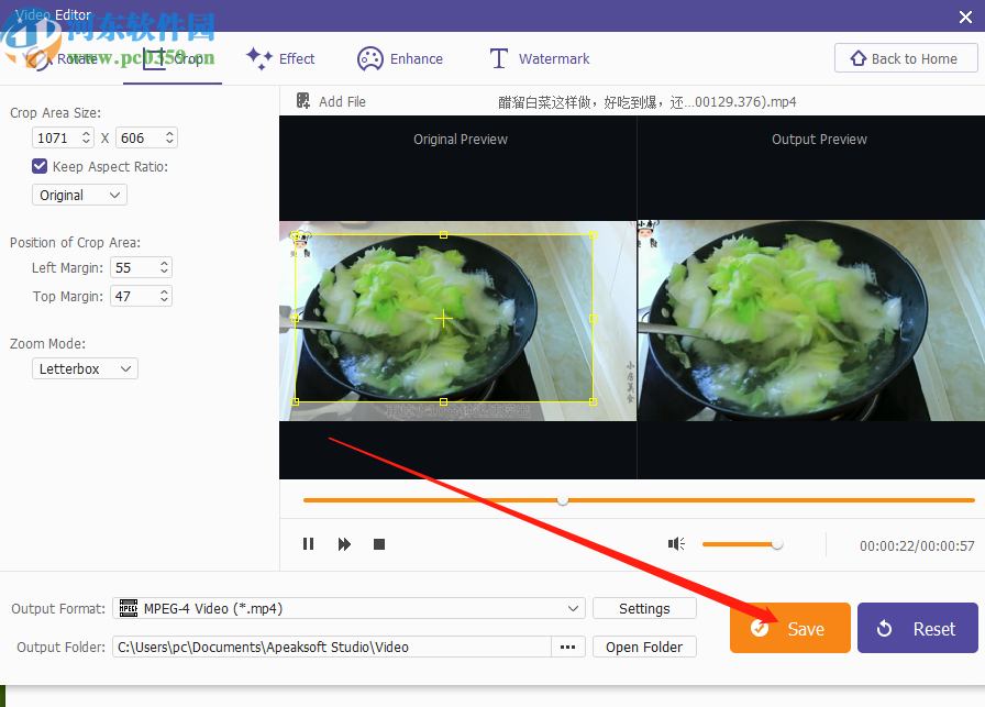 6.最后我们设置好输出位置之后点击界面右下角的Save按钮可以保存裁剪之后的视频文件。