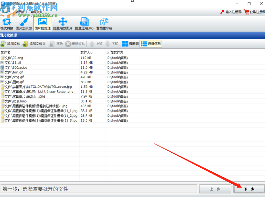 3.点击确定按钮之后软件就会自动识别在文件夹中的所有图片了,全部识别完成之后我们再点击右下角的下一步按钮。