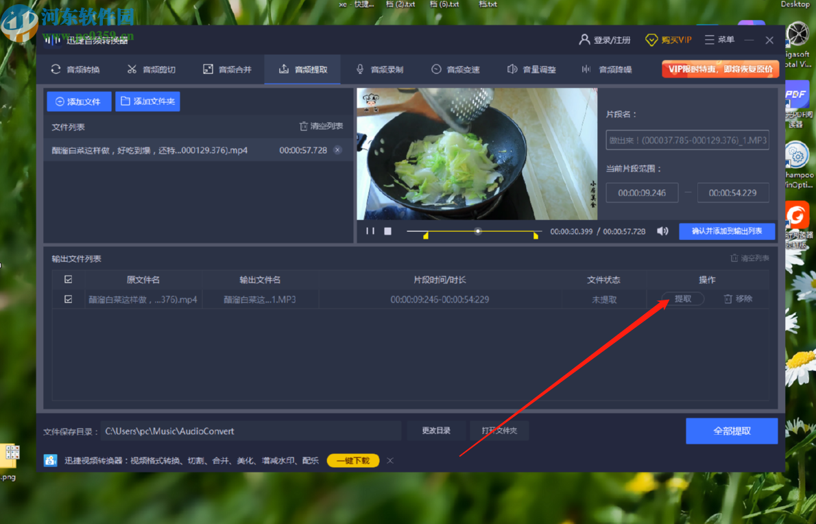 6.最后设置好输出文件夹我们就可以点击界面中的这个提取按钮来提取选取视频片段的音频文件了。