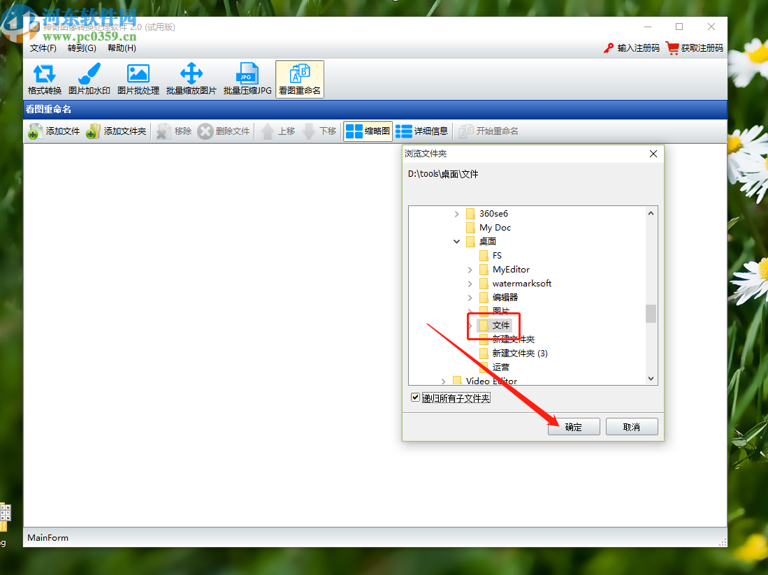 2.点击添加文件夹之后,下一步在出现的选择文件夹界面中选择想要重命名的图片所在的文件夹,选中之后点击确定按钮。