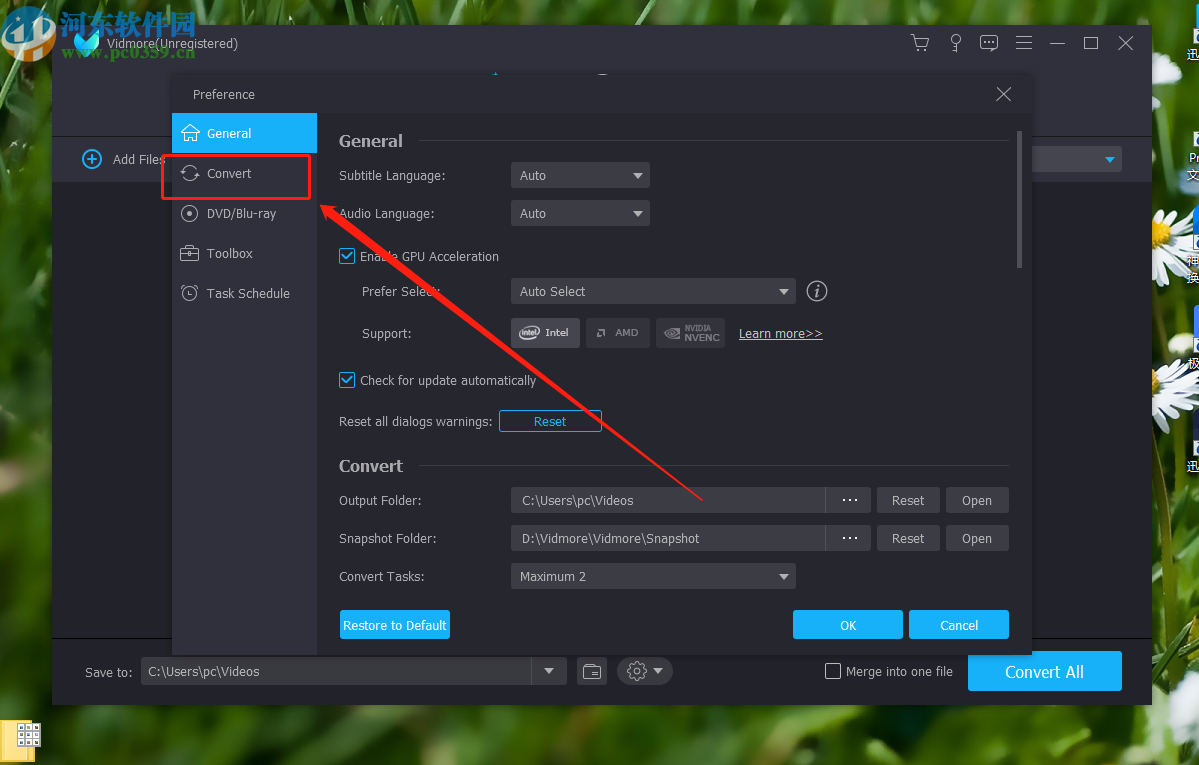 3.进入到软件的设置界面之后,我们在左边列表中点击切换到Convert这个设置模块,如下图中所示。