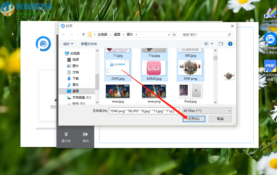 3.点击选择图片之后,在出现的选择文件界面中,选中想要拼接的一些图片之后点击打开按钮就可以将它们添加进来了。