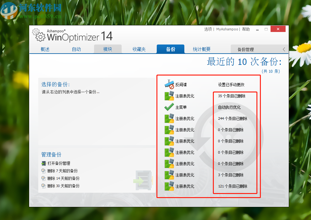 2.进入到备份功能模块之后,我们就可以看到界面中的备份选项了,并且显示了备份中被删除条目的数量。