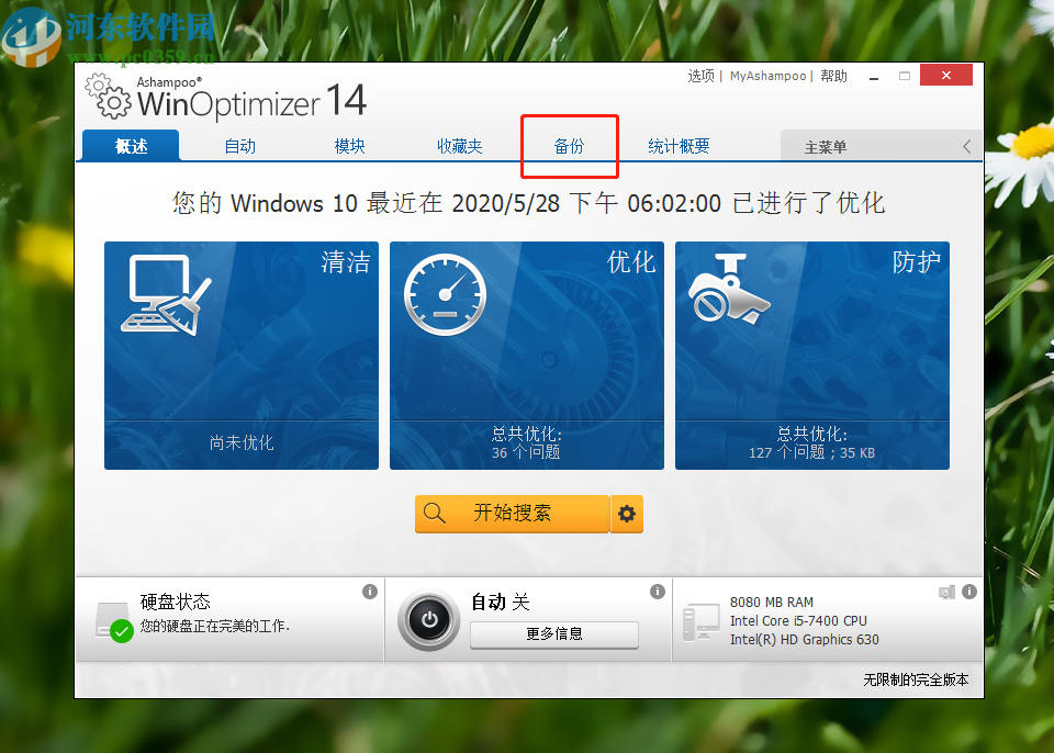 1.首先第一步我们打开软件之后在软件界面中点击备份选项,点击之后切换到软件的备份功能模块。