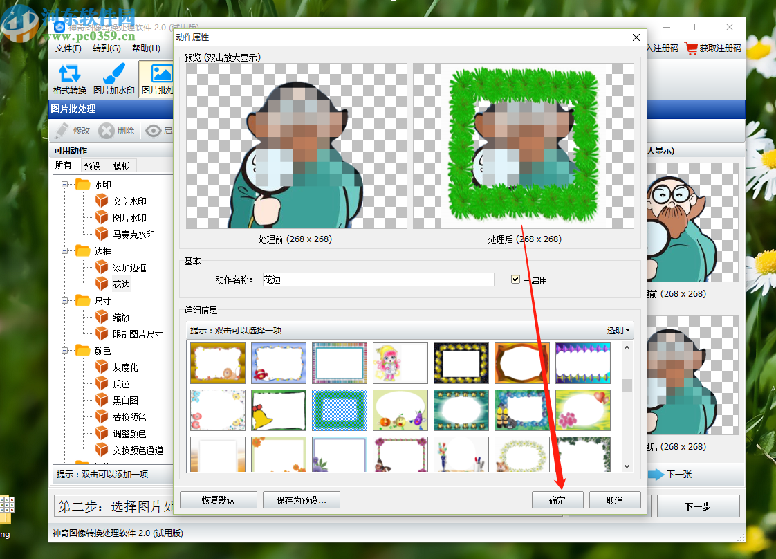 5.点击选择好想要使用的花边之后,在界面右上方可以预览到效果,满意的话点击下方的确定按钮即可。