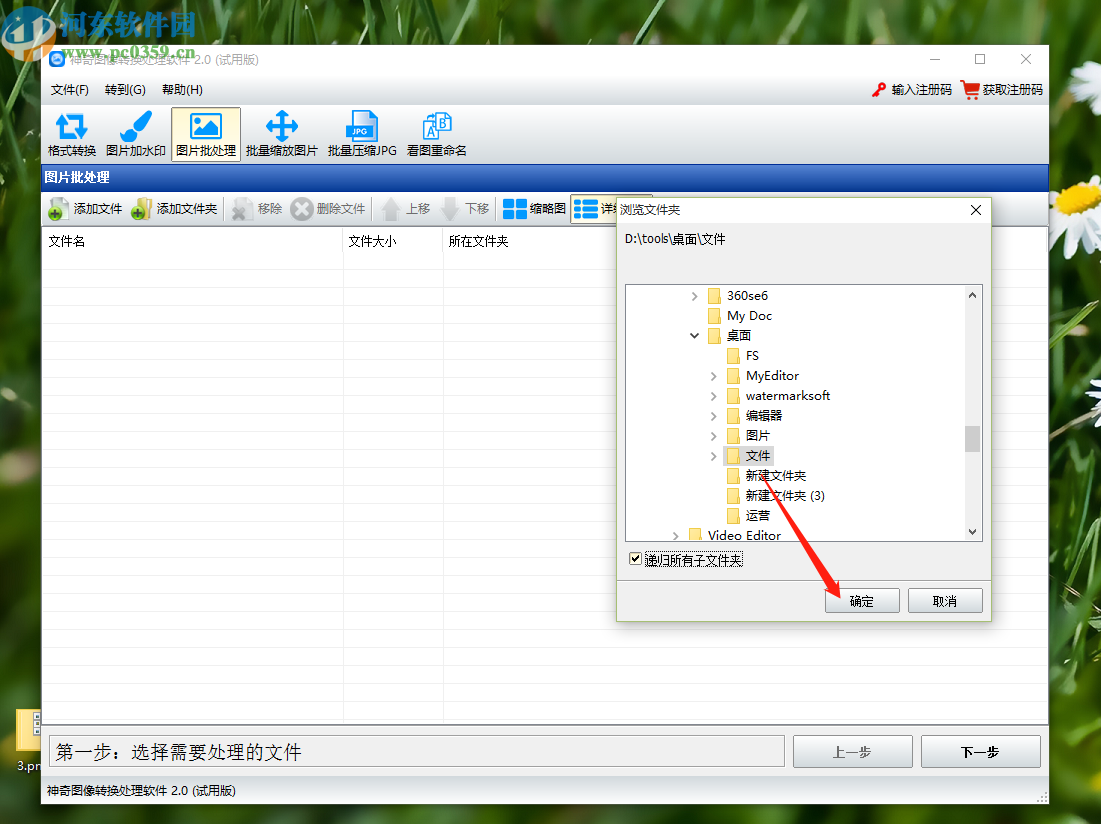 2.点击添加文件夹按钮之后,接下来打开一个选择文件的界面,我们选中要处理的图片所在的文件夹之后,点击确定按钮。