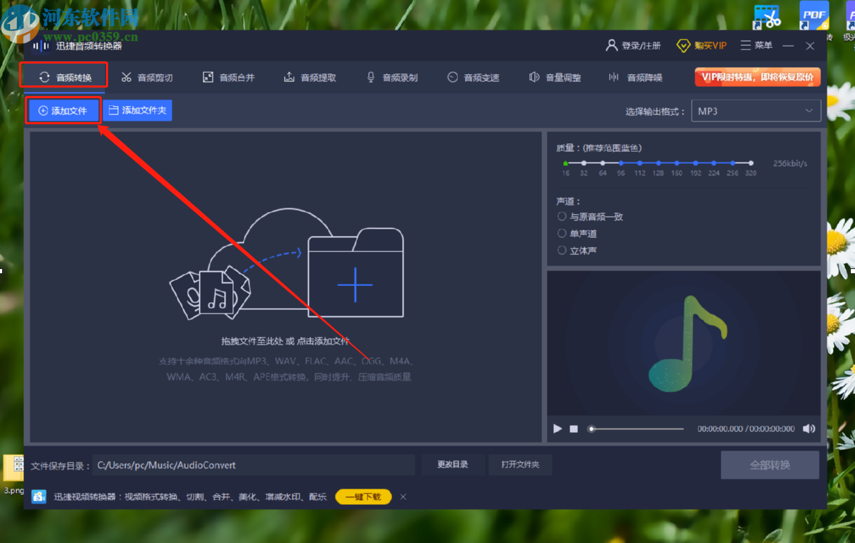 6.最后设置好文件输出文件夹之后,点击界面右下角的全部转换按钮就可以开始转换音频格式的操作了。