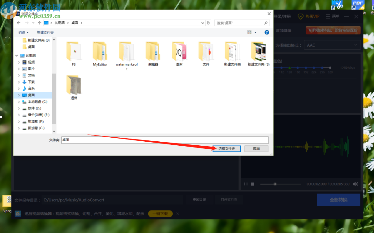 5.点击更改目录按钮之后,我们在出现的选择目录界面中,选择需要的输出目录之后,点击界面右下角的选择文件夹按钮即可。
