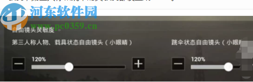2.紧接着第二步我们需要开始调整设置自由镜头的灵敏度,自由镜头的灵敏度可以游戏中的小眼睛来点击设置,我们将它们都设置为120%,如下图。