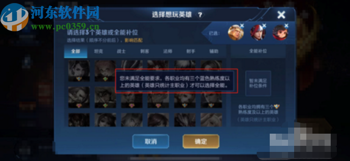 4.另外除了设置想玩英雄之外我们还可以将自己更改成全能选手,不过需要满足的要求就是在各个职业中都有三个蓝色熟练度以上的英雄可以,满足条件的用户也可以设置为全能选手。