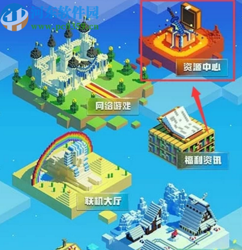 1.首先第一步我们打开手机之后点击进入到我的世界手游当中,登录上自己的账号之后在主页面中点击进入资源中心。