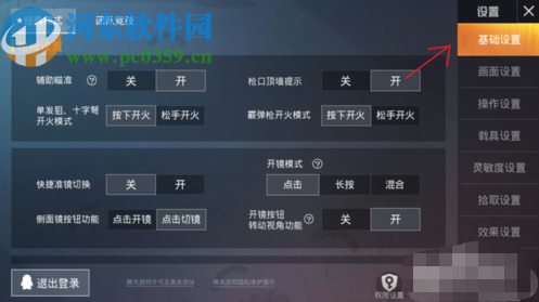 2.进入到游戏的设置界面之后我们在界面右边点击基础设置这个模块,我们要设置的探头射击功能在基础设置选项中。