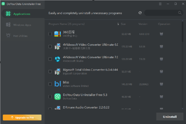 DoYourDataUninstallerPro是一款非常实用的电脑程序卸载软件,用户可以通过这款软件来批量卸载电脑中安装的应用程序,如果用户在使用电脑的过程中安装了很多软件,但是后期