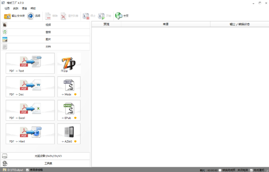 格式工厂是一款功能丰富的文件处理工具,其中可以处理多种格式的文件,不管是音频、视频还是文档都可以添加到软件中进行处理,并且每一种类型的文件都有常用的功能,可以满足到