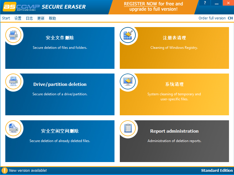 SecureEraser是一款非常实用的文件删除工具,当我们在电脑上安装这款软件之后就可以删除电脑中的一些文件数据了,并且可以选择性的删除一些文件,其中还有帮助用户清理系统