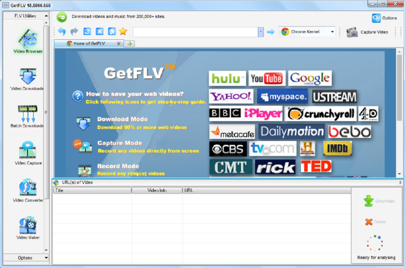 GetFLVPro是一款免费的flv视频下载转换软件,它提供的视频下载和转换功能都是非常实用的,可以下载到网页链接中的视频文件,也可以在软件中转换视频的格式,大家都知道flv格式
