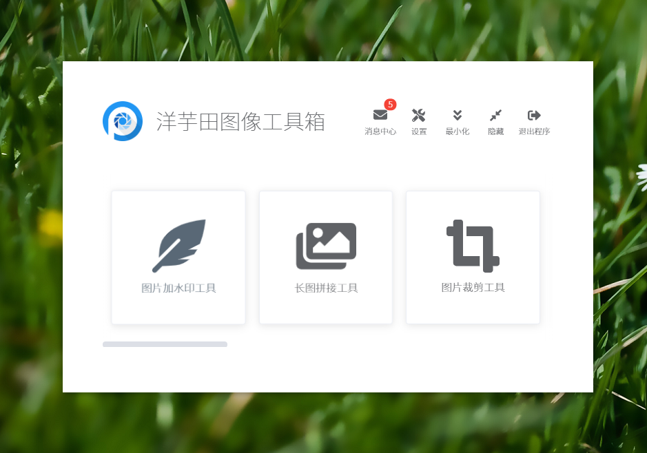 洋芋田图像工具箱是一款图像处理工具,在这款软件中主要有图片加水印、拼接图片和裁剪图片的功能,这些功能都是用户在处理图像时最常用到的一些功能,并且这款软件的这些功能
