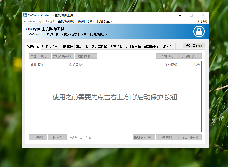 CnCryptProtect是一款非常强大的主机防御工具,其中有各个方面的拦截功能,可以拦截用户不信任的一些文件或程序,这样就能够避免在使用电脑的过程中被一些危险文件入侵,其中