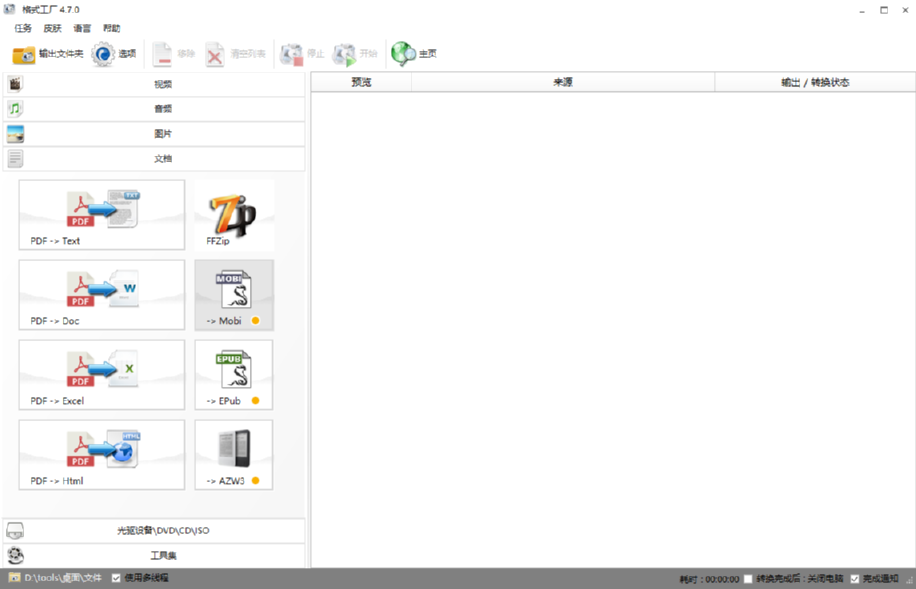 格式工厂是一款功能非常丰富的文件处理工具,在这款软件中用户可以将视频、音频、图片等文件添加到其中进行处理,在软件中的文档模块中可以将PDF文件转换成其他各种格式的
