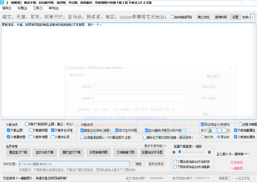 大仙一键搬图是一款功能非常强大的图片下载软件,它的主要功能是帮助用户在电脑上下载一些网页中的图片文件,比如淘宝、京东、阿里巴巴等多个电商平台的图片,如果用户想要获