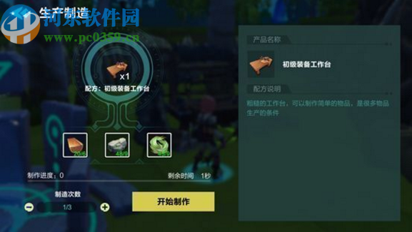 4.最后就是开始合成的操作界面了,我们收集好需要的材料配方之后,在合成界面中将材料都放置到合成台中,点击开始制作按钮就可以进行合成了。