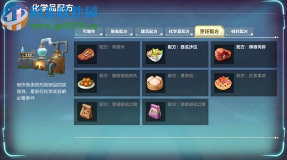 2.在游戏中有非常多的工作台可以选择合成,就比如烹饪工作台、材料工作台、建筑工作台、装备工作台等,还有一个化学工作台,可以用来加工采集到的药材。