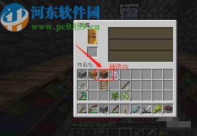 2.等到我们合成锻造台之后,进入到游戏中然后在物品栏找到锻造台这个工具,然后点击他就可以进入到使用锻造台的操作界面。