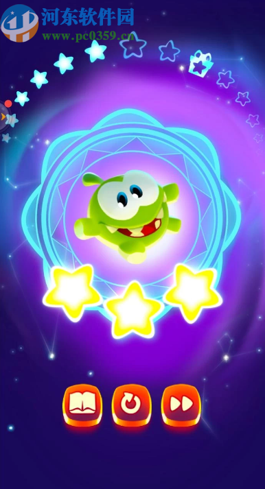 4.最后根据以上所有步骤的顺序来分别割掉三条绳子之后,就可以顺利的吃到三颗星星了,然后这一关就三星通关了。
