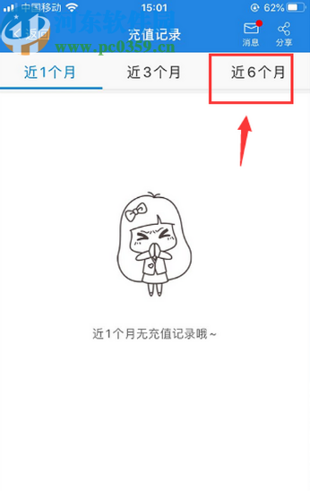3.点击进入到查看充值记录的界面之后,我们可以看到近1个月、3个月、6个月的充值记录。