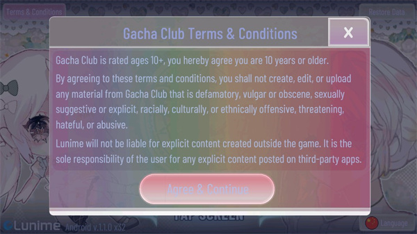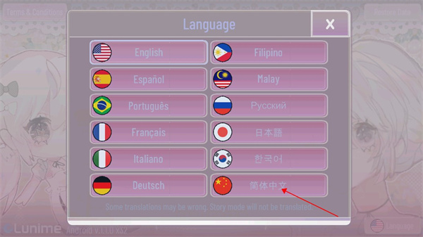 首先进入GACHA甜甜官方正版,这里点击右下角language;