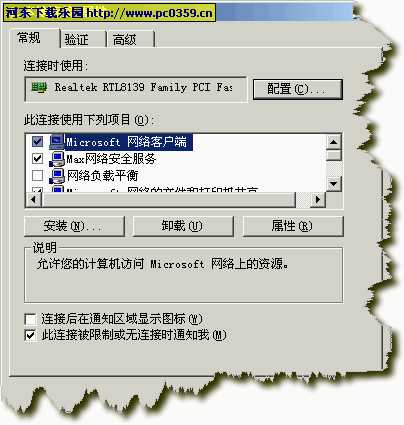 2 右击本地连接 → 属性→安装→服务→从磁盘安装→浏览 找到本地MAX网络安全服务文件夹 选择→netsf1.ini 确定