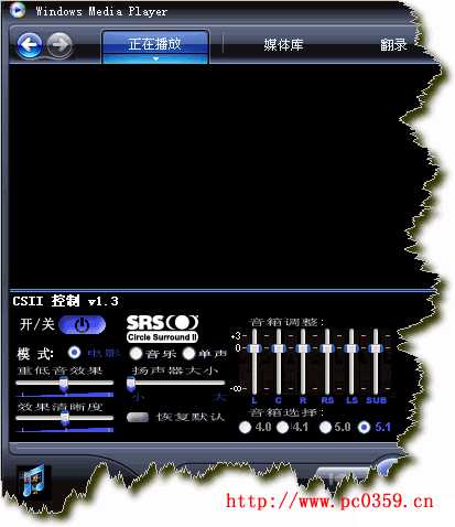 Windows Media Player 11 极品音频插件SRS CircleSurround II 汉化版
