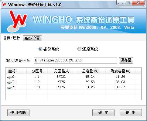 WINGHO系统备份还原工具 V1.0┊支持XP、2003、Vista系统┊绿色版
