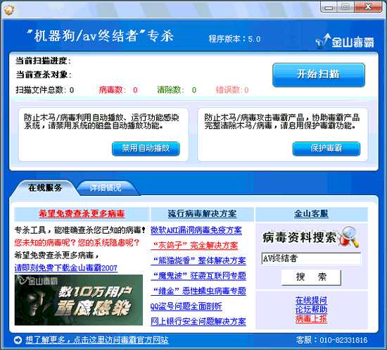 金山机器狗/AV终结者 专杀工具 V6.4绿色版