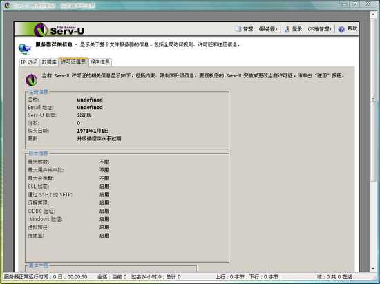 - 修正了以下错误:至少登录一次以后当试图登录的次数超过了上限值时, Serv-U 会返回两个而不是一个错误应答。