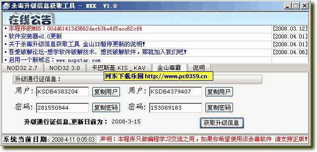 NOD32 卡巴 金山杀毒升级信息获取工具