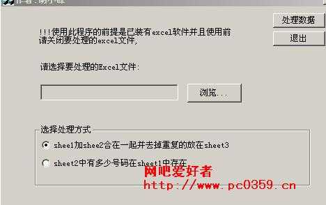 Excel筛选 是一款方便你对excel文件中不同sheet中的数据进行合并,比较是否重复的软件 在日常工作生活中我们常用excel电子表格来记录数据, 有时二组数据需要知道这二组数据合起来,并且去掉重复的, 或者,第二组数据有那些在第一组中已经存在. 例如移动公司的员工,要知道哪些号码重复,或者将二组号码合并起来去掉重复的记录. , 对于开发人员,作者,系统管理员,来说会省去很多的时间或者减少可能出现的错误.目前可以正常使用在 Win2000/Win2003/Winxp/Vista 平台上,无插件! 此软件完全免费