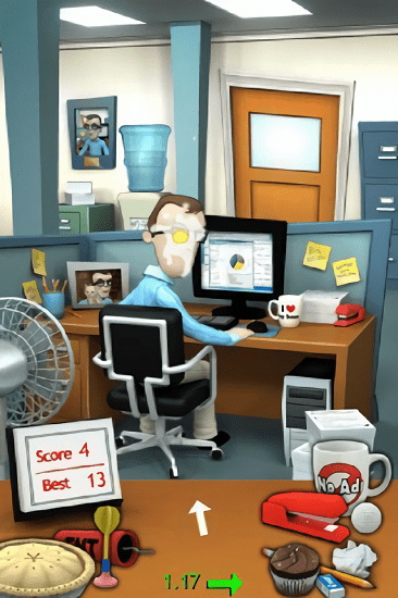 游戏画面:卡通搞笑本作游戏的画面使用了完全的卡通风格,但打造的办公室却非常逼真,这样就会形成反差,产生焦点。而且最重要的是搞笑的风格发挥的淋漓尽致, 每个恶搞的画面都能让玩家发笑。