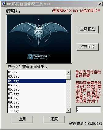 XP开机画面修改工具v1.0(自带62张精美图片) 绿色版