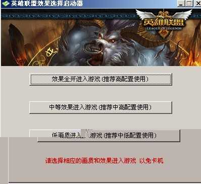 LOL英雄联盟游戏效果启动工具此工具主要用于启动LOL前选择效果达到避免卡机的问题。下载后修改“配置文件.ini"中的路径。然