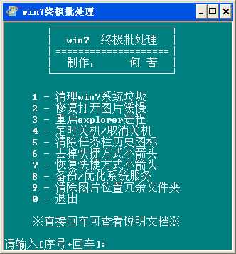 本版(1.0.0.3)批处理已将功能更新如下:1 - 清理win7系统LJ --------------常规清理一些系统里的临时文件等2 - 修复打开图片缓慢 ---