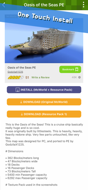 一键安装到现有的世界。
