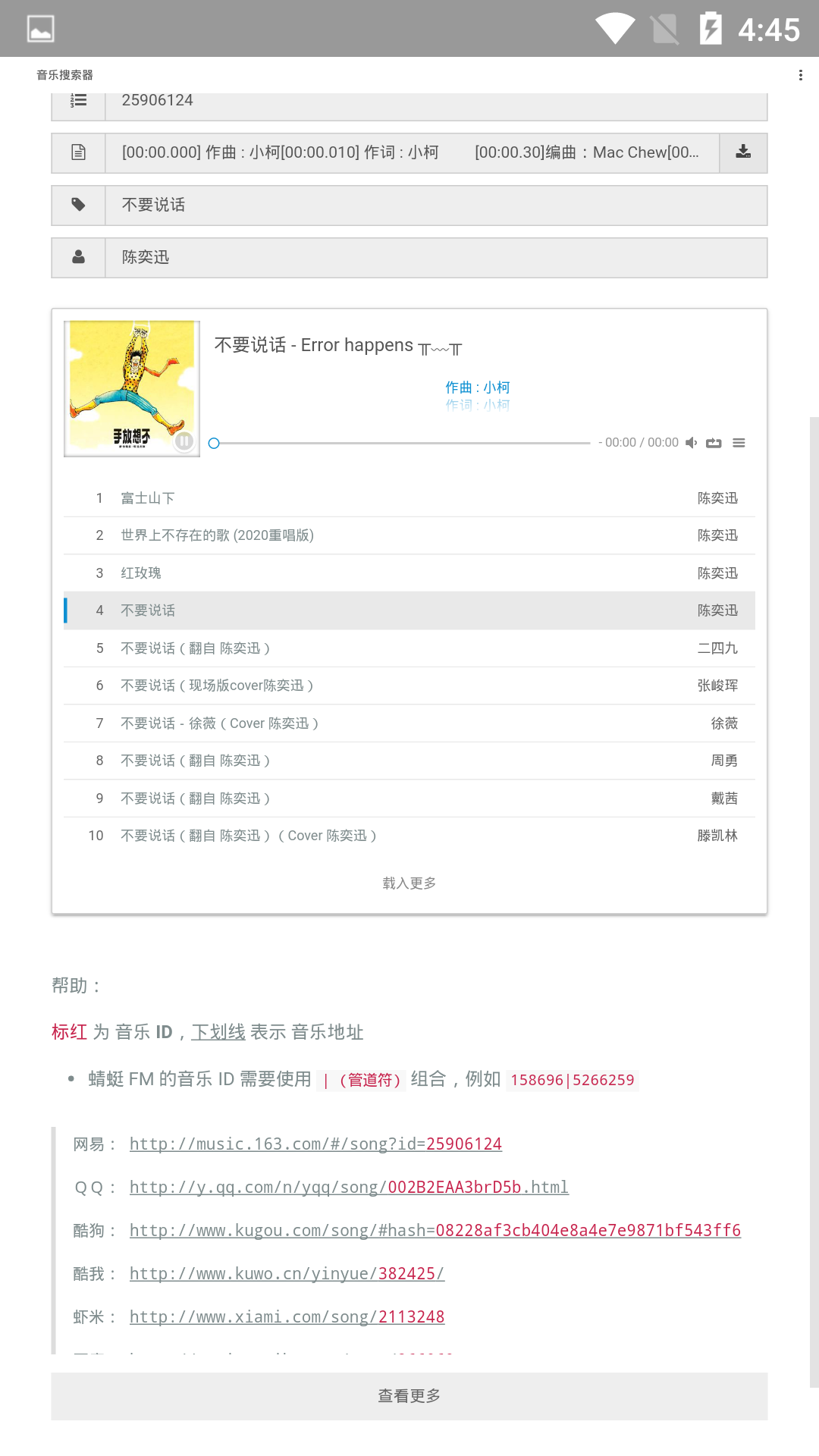 支持音乐名称,音乐id和音乐地址搜索;
