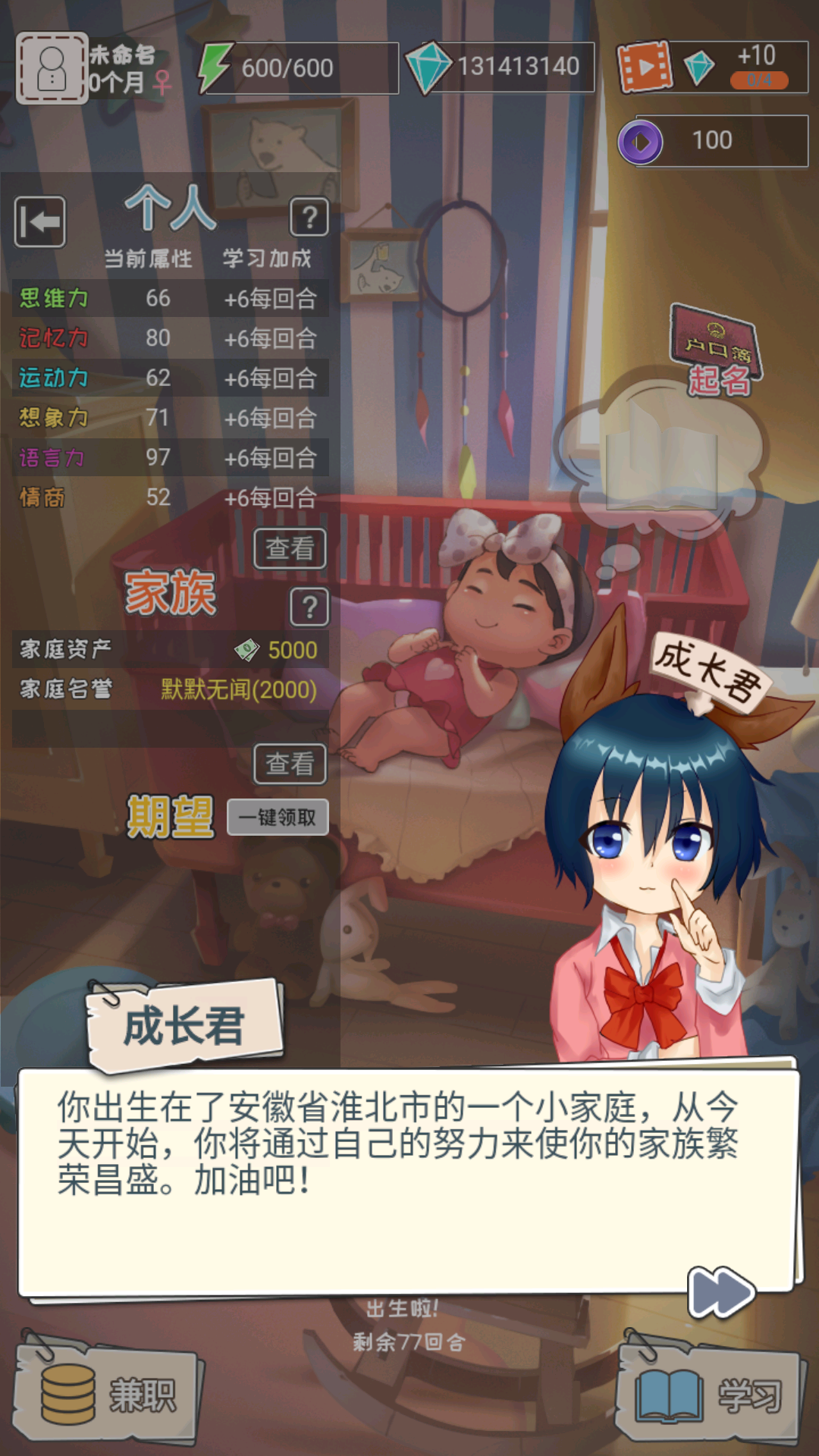两种身份进行设定,回到医院的你出生了,