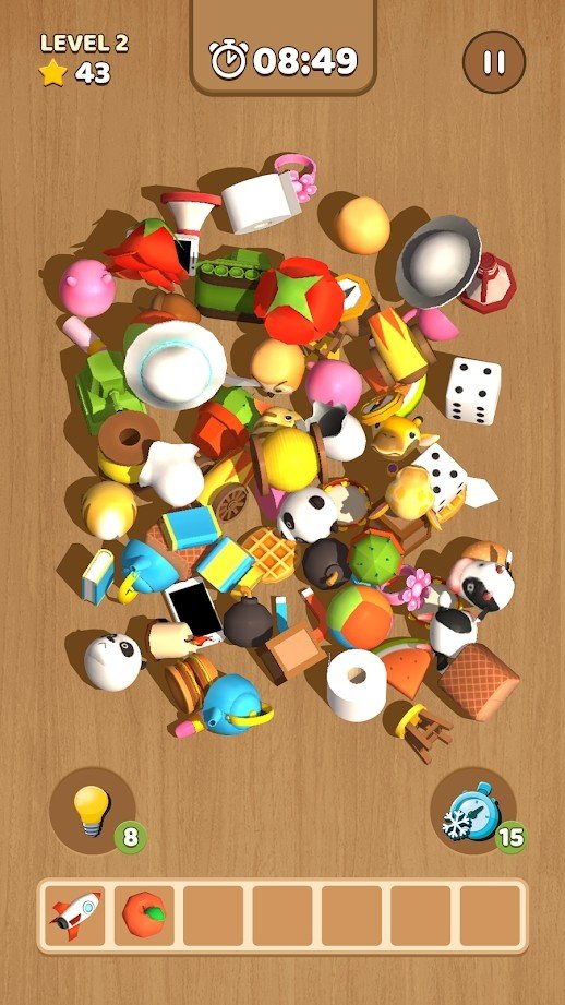 3、只需将三个相同的玩具摆放在一起就能实现消除,这是一款拥有3D画风的三消游戏,具备独特的视觉感受。
