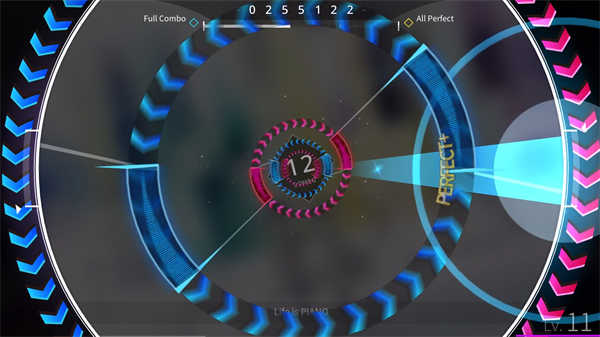 1、在Rotaeno中,所有音符都会向判定圈落去。
