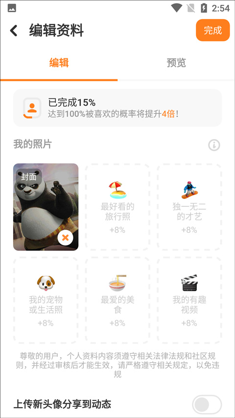 用照片尽情展示自己,穿衣品味,兴趣爱好,旅行阅历等让你魅力大增。