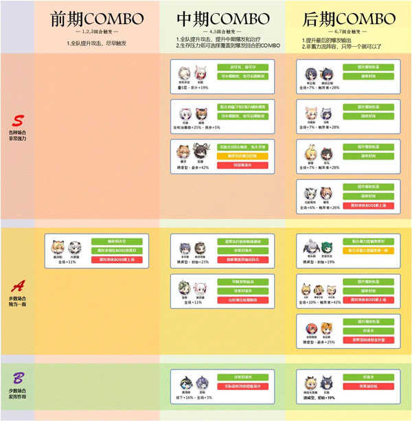 这个游戏有一个COMBO机制,翻译过来就是某特定组合的兽娘一起上场可以获得某种加成。